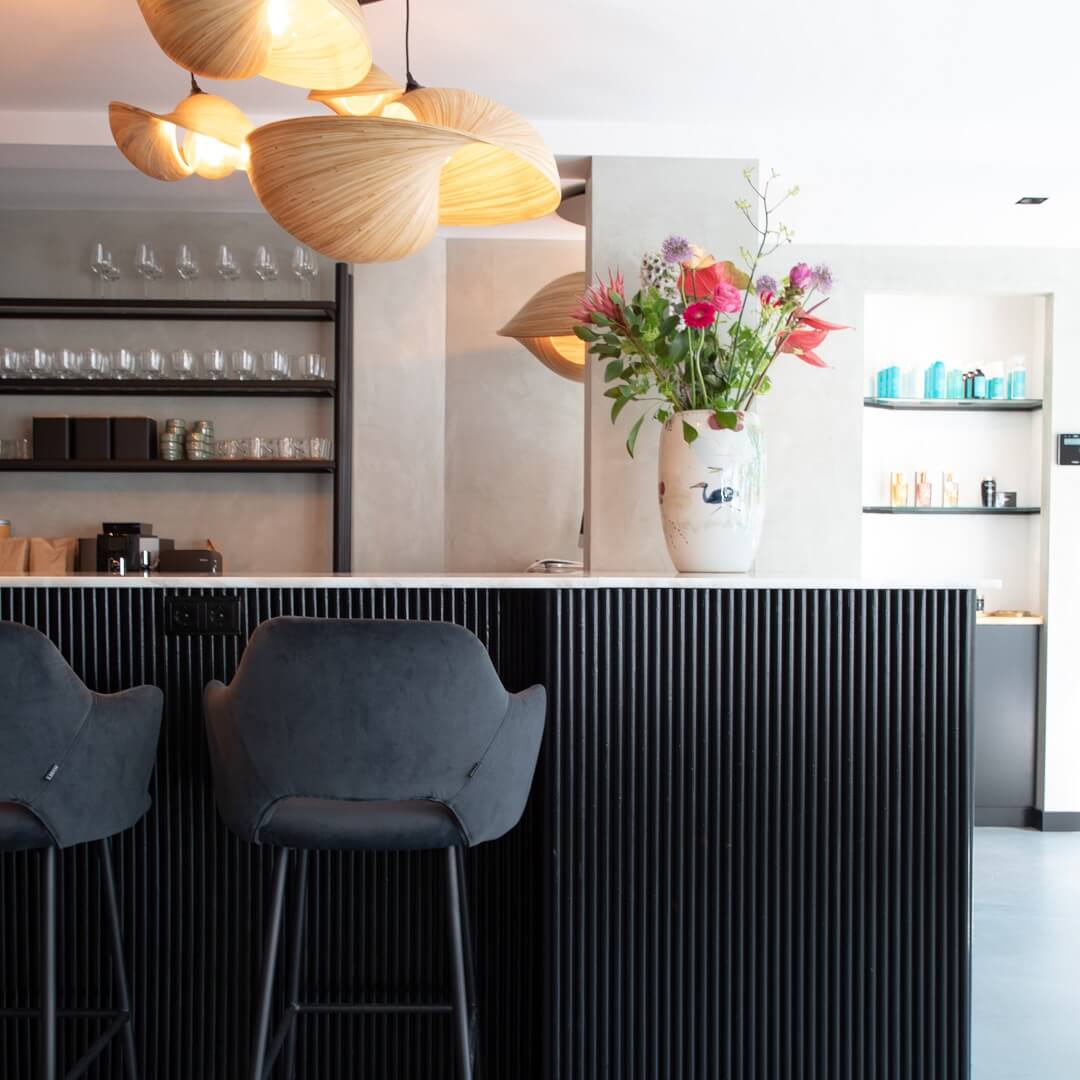 Onze mooie salon is een plek waar veel mensen zich thuis voelen. Dit komt onder andere door het interieur en comfort dat de salon met zich mee brengt. Kom aan de bar zitten voor een gezellig gesprekje met een van onze salon assistentes of neem plaats aan de werktafel waar genoeg plek is voor jou en je laptop. In het raam vindt je een comfortabele bank waar je rustig een tijdschrift kunt pakken totdat je wordt opgehaald voor je treatment.
